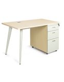 - Hộc gỗ thân gỗ, mặt ngăn kéo bằng sắt sơn tĩnh điện màu kem có khóa hộc.