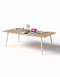 Bàn 2.4m, kiểu chân 1907, chân ống Ø 50 tóp côn có hộp kỹ thuật,liên kết với thanh giằng hộp 25x50. Phần sắt sơn tĩnh điện màu kem hoặc đen.