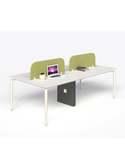 Chất liệu: Bàn nhân viên cụm 4 có hộp kỹ thuật ốp gỗ, chân sắt ống chỏm cầu tóp côn sơn đen sần hoặc kem, thanh giằng hộp 25x50. Mặt bàn gỗ MFC dày 25mm chống xước, chống cong vênh, mối mọt. Bền bỉ theo thời gian.