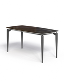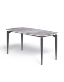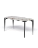 Chất liệu: Bàn ăn chân sắt tạo hình chỏm cầu tóp côn, khung đỡ mặt bàn bằng thép hộp 25x50, sơn đen sần hoặc kem. Mặt bàn bằng đá ceramic dày 12mm.
