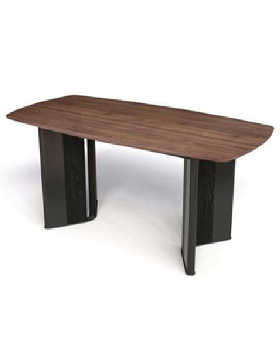 Chất liệu: Bàn ăn chân sắt mạ giả inox màu đen bóng được dập hộp tạo hình có phối gỗ laminate màu vân gỗ. Khung mặt bàn thép hộp sơn tĩnh điện màu đen. Mặt bàn cốt gỗ plywood dày 18mm phủ melamin 2 mặt. Cạnh bàn vát chéo.