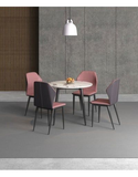 Chất liệu: Bàn ăn mặt tròn, chân làm từ chân ống Ø 50 tóp côn. Khung đỡ mặt bàn bằng thép hộp 25x50, sơn đen sần hoặc kem. Mặt bàn bằng đá ceramic dày 12mm.