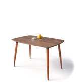 Chất liệu: Bàn ăn chân gỗ cao su sơn màu nâu cánh gián hoặc vàng tự nhiên, khung mặt bàn thép hộp 25x50 sơn tĩnh điện đen sần. Mặt bàn gỗ cao su ghép thanh dày 20mm. Mặt bàn có 2 màu như chân gỗ.