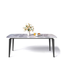 Chất liệu: Bàn ăn chân sắt tạo hình kiểu thanh cài bút, sơn tĩnh điện tĩnh điện đen sần hoặc kem. Mặt bàn bằng đá ceramic dày 12mm.