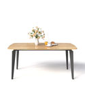 Chất liệu: Bàn ăn chân sắt tạo hình kiểu thanh cài bút, sơn tĩnh điện đen sần hoặc kem. Mặt bàn gỗ cao su cài thanh dày 20mm. Có 2 màu sơn gỗ: nâu cánh gián và vàng tự nhiên.