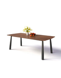 Chất liệu: Bàn ăn chân sắt kiểu gậy bóng chày, sơn tĩnh điện đen sần hoặc kem. Mặt bàn cốt gỗ plywood dày 18mm phủ melamin 2 mặt. Cạnh bàn vát nghiêng.