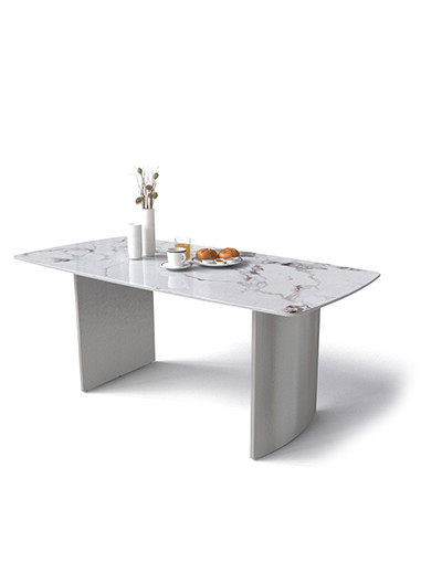 Chất liệu: Bàn ăn chân làm từ inox tấm mờ màu ghi dập ép tạo hình chỏm cầu. Khung mặt bàn thép hộp 20x40 sơn tĩnh điện đen sần. Mặt bàn bằng đá ceramic dày 12mm.