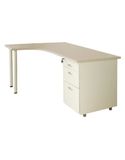 - Bàn văn phòng góc trái có hộc sắt 3 ngăn kéo liền bàn, chân trụ tròn. Mặt bàn được làm từ gỗ công nghiệp phủ melamine