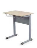 - Bàn học sinh chân sắt sơn tĩnh điện màu ghi, chân trụ đứng bằng ống oval 30x70, mặt bàn melamine dày 17mm, yếm sắt, ngăn bàn bằng thép Ø5.