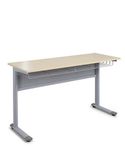 - Bàn học sinh chân sắt sơn tĩnh điện màu đen, chân trụ đứng bằng ống oval 30x70, mặt bàn melamine dày 17mm, yếm sắt, ngăn bàn bằng thép Ø5.