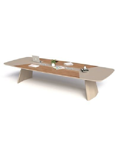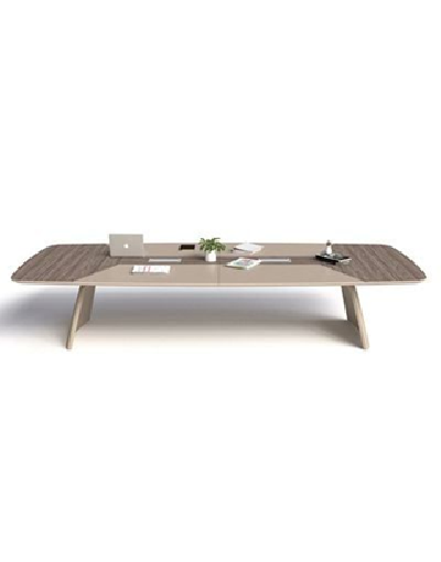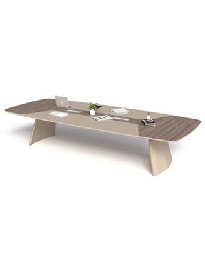 Bàn 262BH36 thuộc dòng Bàn họp có chân bằng thép hộp dày 40mm tạo hình cánh quạt sơn tĩnh điện màu đen/ vàng cát, thanh giằng thép hộp. Mặt bàn gỗ MFC 2 lớp, lớp trên dày 17mm, lớp dưới dày 17mm cạnh vát chéo kèm 2 nắp nhôm lật 2 chiều.