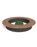 Chất liệu: Mặt bàn gỗ MFC dày 50mm, yếm sâu sát đất. Bàn được ghép từ 12 khối bàn cong đơn.