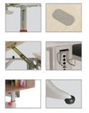- Điều chỉnh độ nghiêng mặt bàn an toàn, không cần dụng cụ mở, có 6 vị trí: 00, 100, 150, 180 , 220 , 250 .