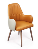 Chất liệu: Ghế tựa lưng liền tay bọc da PU các màu, chân làm từ gỗ tự nhiên Ø32 phủ sơn PU.
