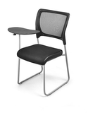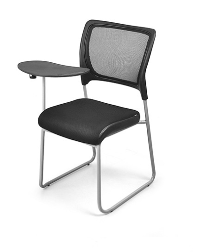Chất liệu: Ghế tựa có chân làm bằng khung sắt mạ. Lưng ghế bằng khung nhựa bọc vải lưới, đệm ghế bọc vải lưới viền da. Có mặt bàn viết.