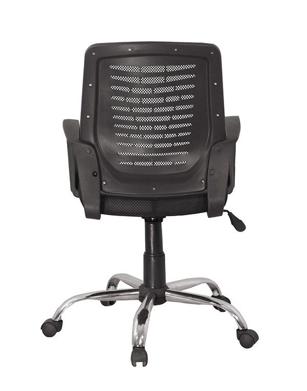 - Lưng ghế với khung nhựa đàn hồi cao cấp và mặt tỳ lưng bằng vải lưới tạo sự phân bổ đồng đều áp lực, lưu thông không khí, tránh sự tích nhiệt. Đêm được làm bằng da, tay nhựa đúc và chân sao mạ cr+niken.
