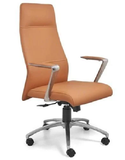 Chất liệu: Ghế xoay lãnh đạo lưng cao bọc da CN, có tựa đầu, tay hợp kim ốp da. Bát vô cấp. Chân sao hợp kim S10