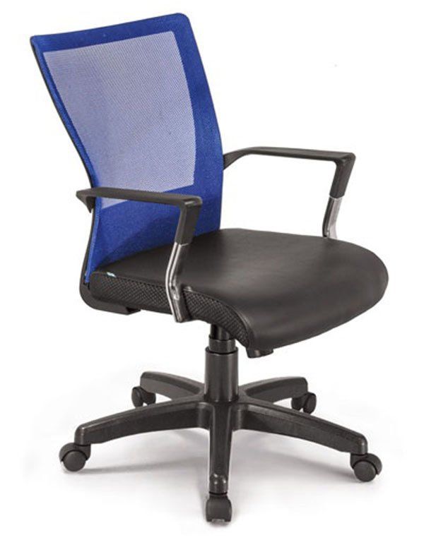 - Ghế được thiết kế đặc biệt với tựa lưng cong giúp đỡ lưng không bị mỏi khi làm việc với thời gian dài. Đệm da viền lưới, chân sao nhựa.