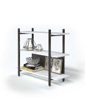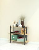 Kệ đựng sách/ trang trí 2 tầng. Khung sắt hộp 25x25 sơn tĩnh điện đen sần, gổ MFC dày 188mm, kết hợp hậu MFC màu chì