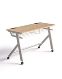 Chất liệu: Mặt gỗ MFC dày 17. Khung thép sơn tĩnh điện ghi nhũ, có ngăn bàn để sách và móc treo cặp và khay bút, có 4 bánh xe có hãm.