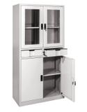- Tủ sắt có 3 khoang, khoang trên cùng có 1 đợt di động, khoang giữa gồm 2 ngăn kéo có khóa, ngăn dưới cùng có 1 đợt di động. Cánh sơn màu kem, các phần khác màu ghi.